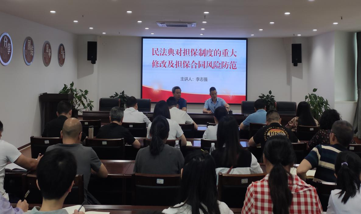 為進(jìn)一步提高風(fēng)險防范能力,幫助干部職工在實際工作中理解并正確適用擔(dān)保制度的有關(guān)法律條文,強(qiáng)化干部職工法治意識,按照“轉(zhuǎn)樹作抓”專項行動方案和年度學(xué)法計劃,5月11日,市擔(dān)保公司開展《民法典對擔(dān)保制度的重大修改及擔(dān)保合同風(fēng)險防范》專題知識講座。