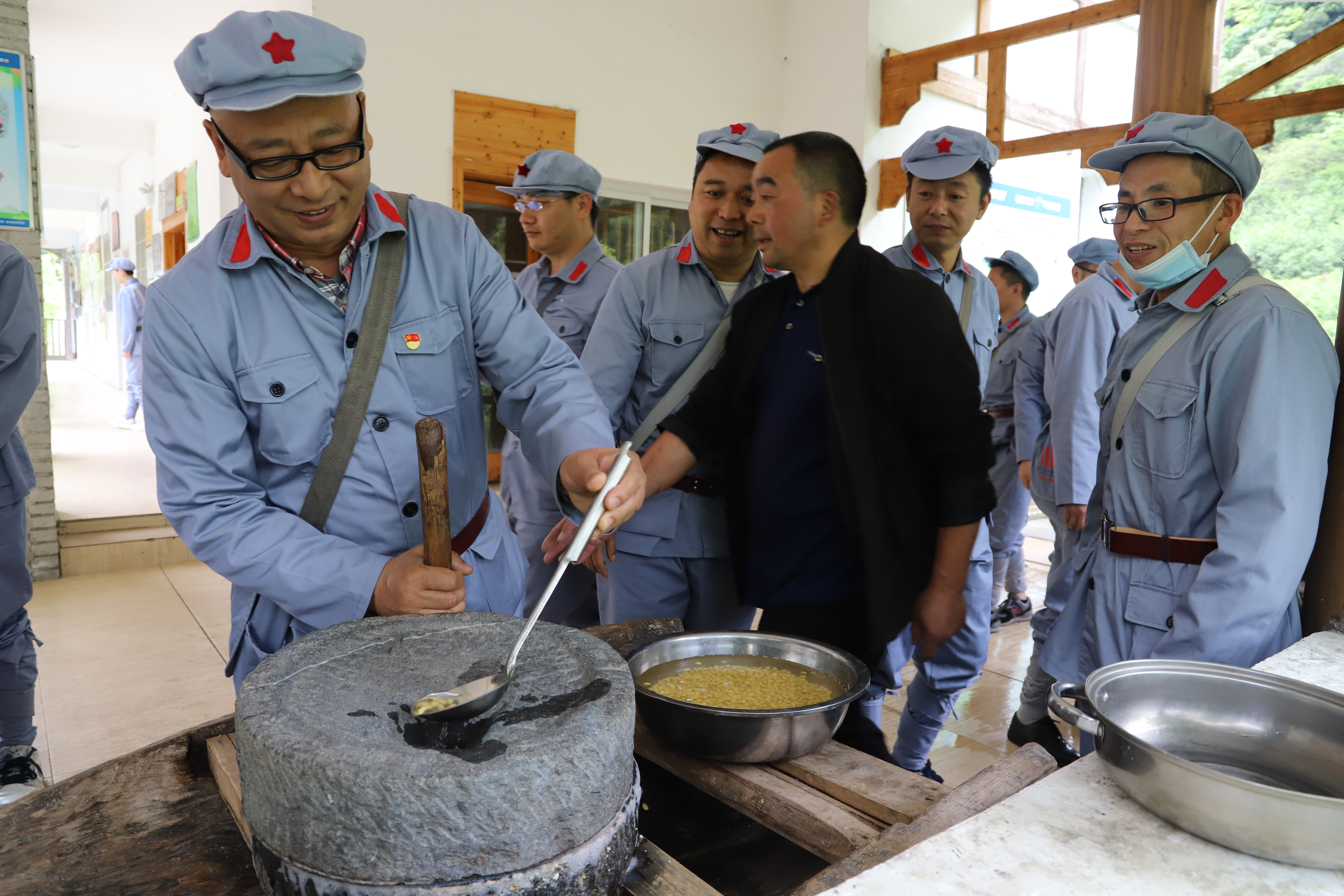 2021年5月20日,雅安夾金山分院黨史學習教育培訓班體驗農(nóng)耕生活之推磨子